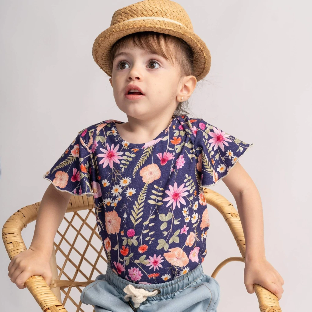 El body "Calafell" es una prenda encantadora y cómoda para bebas confeccionada en algodón elastizado estampado.
