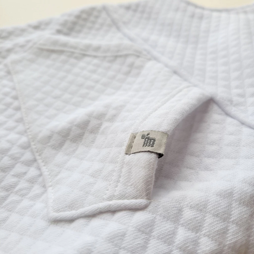 Confeccionado en matelassé 100% algodón, esta prenda es cálida y suave, ideal para la media estación.