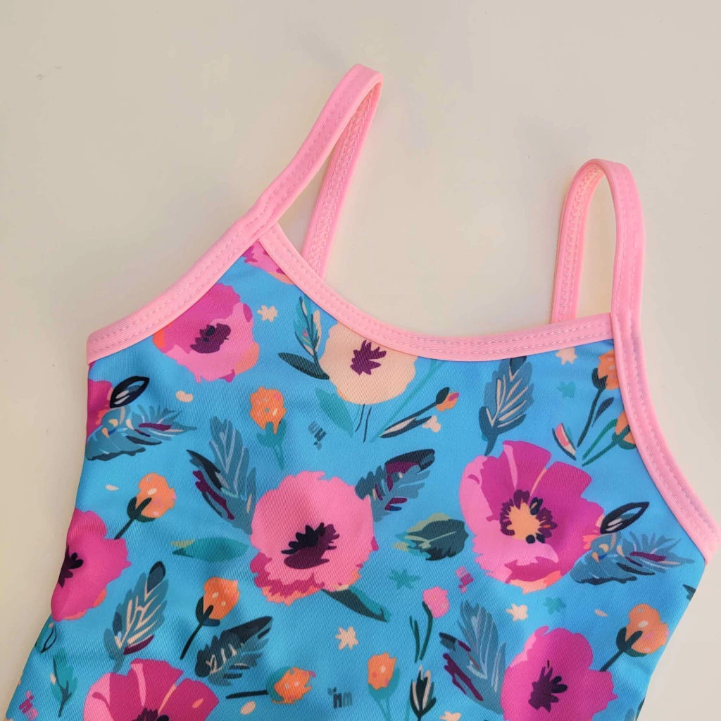 Confeccionada en tricot con elastano, está forrada, es anticloro y cuenta con protección UV50+, cuidando la piel mientras se divierten bajo el sol.