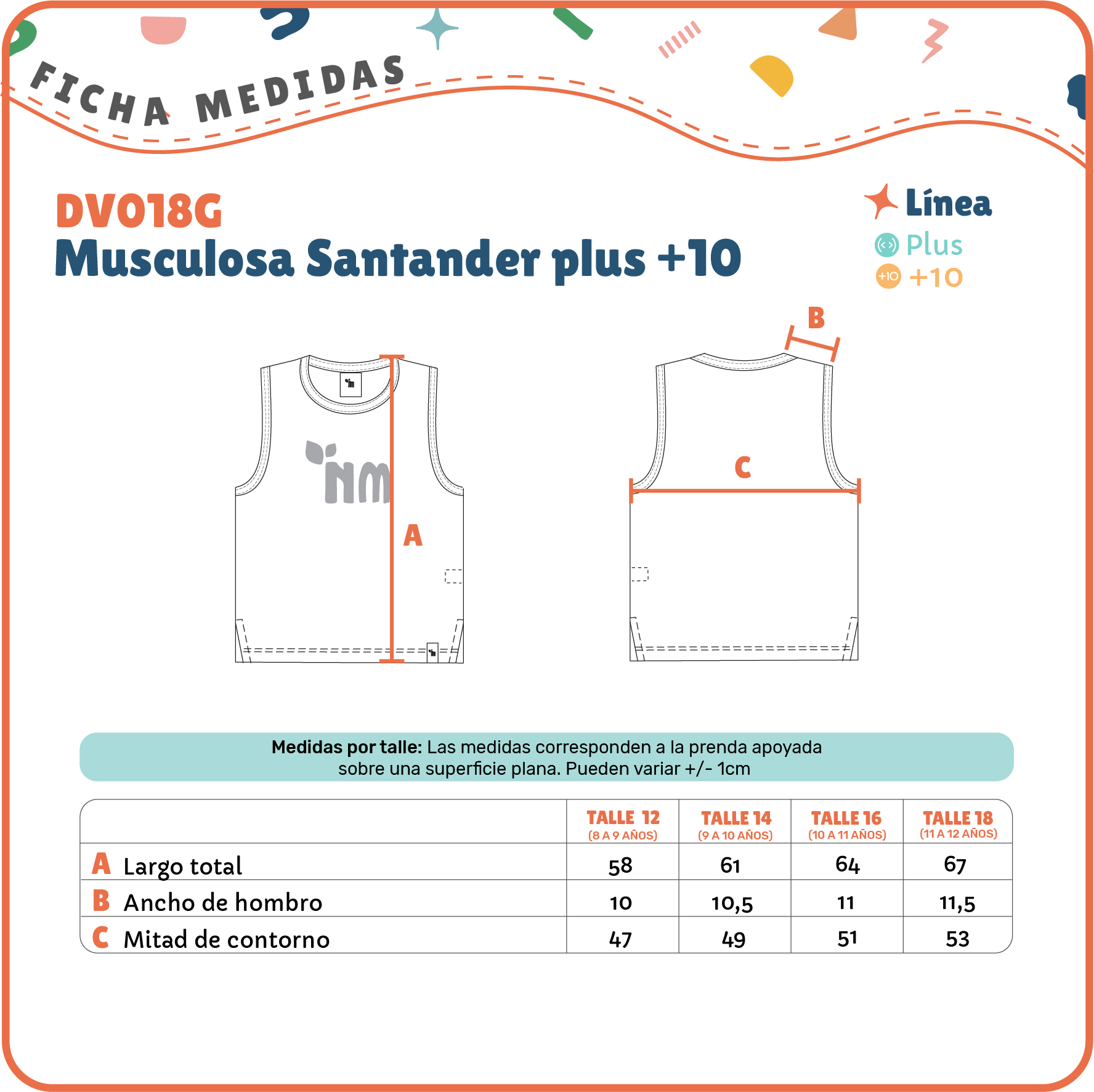 La musculosa para preadolescentes "Santander" es una remera sin mangas de nuestra línea plus.
