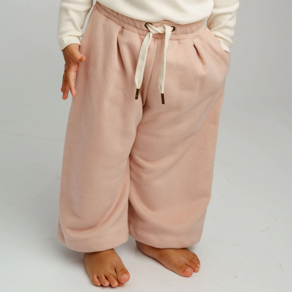 Confeccionado en rústico de algodón gamuzado, un textil suave y confortable, el Palazzo Reartes es una prenda súper cómoda y femenina, pensado para bebas. Su diseño amplio con pinzas en el delantero aporta un toque delicado, mientras que los ojalillos metálicos y el cordón con puntera metálica permiten un ajuste práctico y seguro.