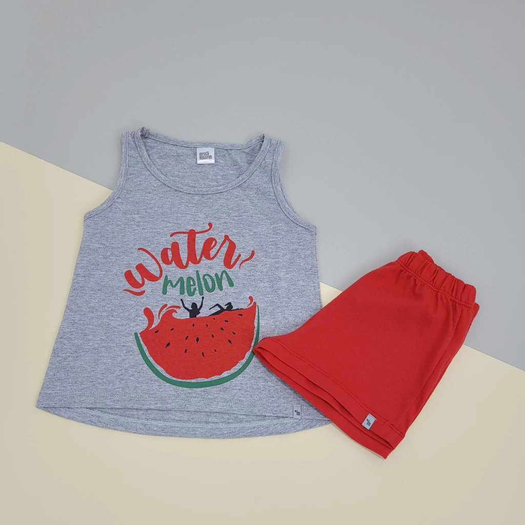 El conjunto consta de un short y una musculosa, ofreciendo la combinación perfecta de frescura y comodidad para las noches más cálidas. Su diseño presenta una alegre estampa y una combinación de colores que añaden un toque de diversión y estilo a cada pijamada.
