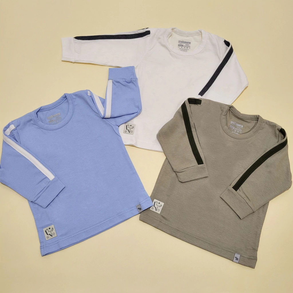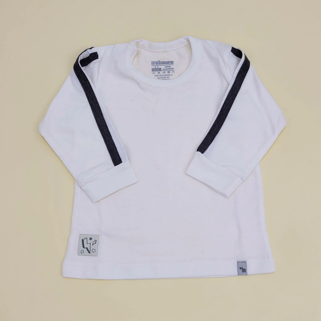 La remera de bebé tiene detalle de puños y tiras a contratono en sus mangas.