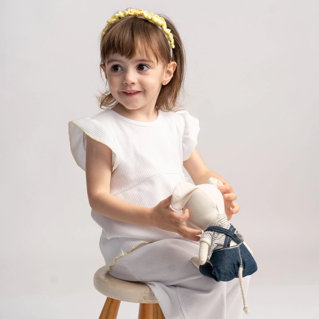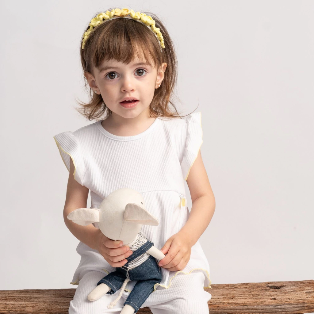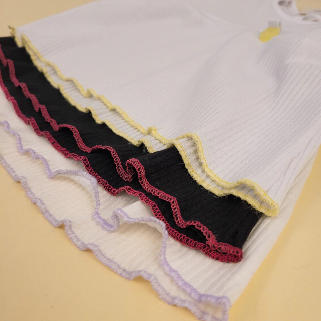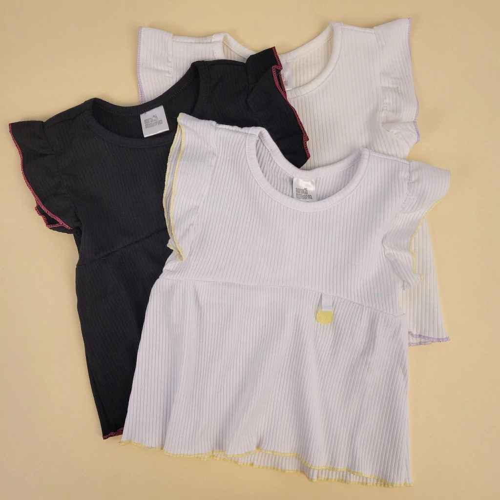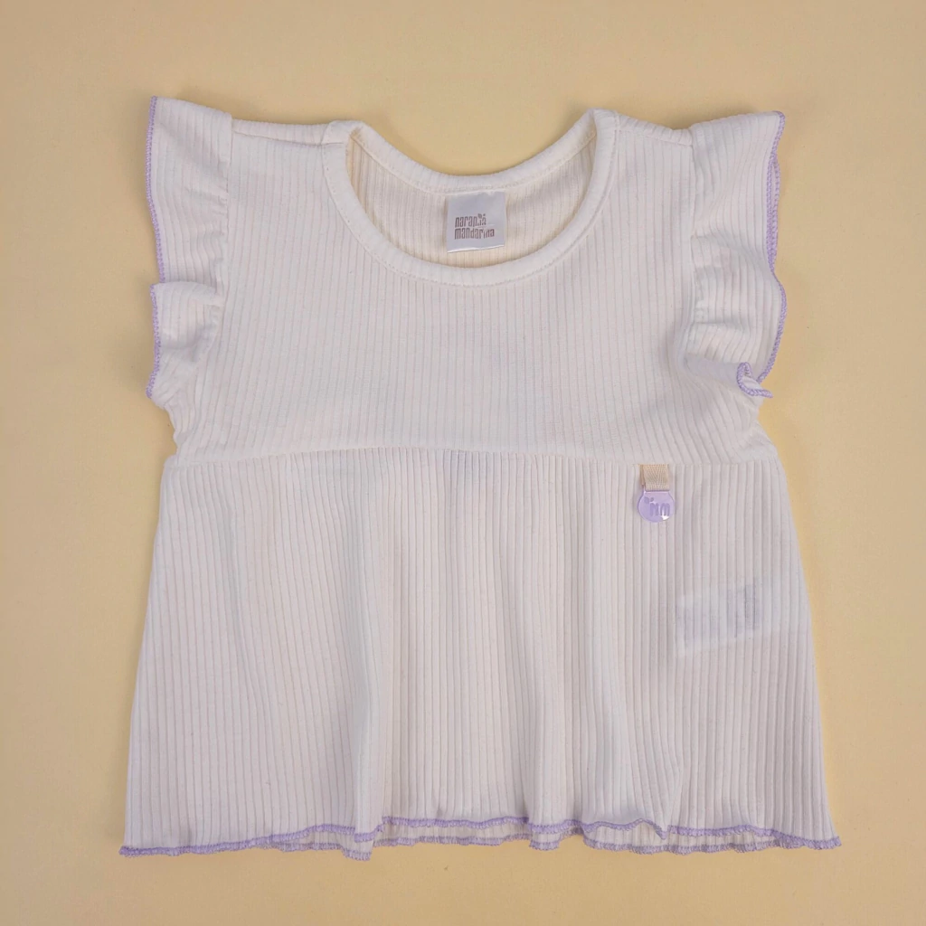 La remera con manga con volados "Honolulu" es una prenda delicada y encantadora confeccionada en morley de algodón y poliéster.