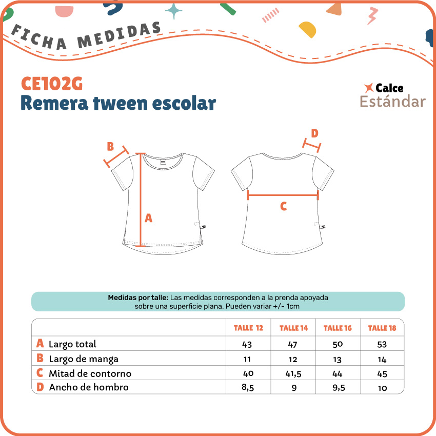 Confeccionada en jersey de algodón suave, brinda una sensación agradable sobre la piel y permite moverse con libertad durante toda la jornada escolar. Su diseño incluye un tajito lateral, que mejora la comodidad al caminar y sentarse.