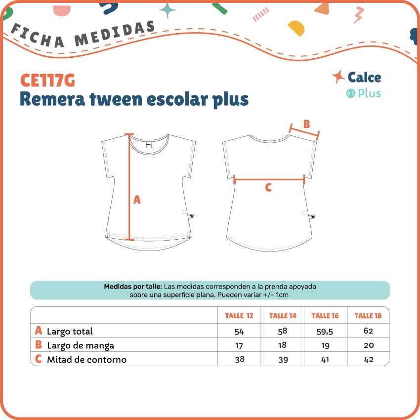 La remera escolar tween de nuestra línea plus está pensada para nenas preadolescentes que buscan un calce amplio y cómodo para el día a día escolar.