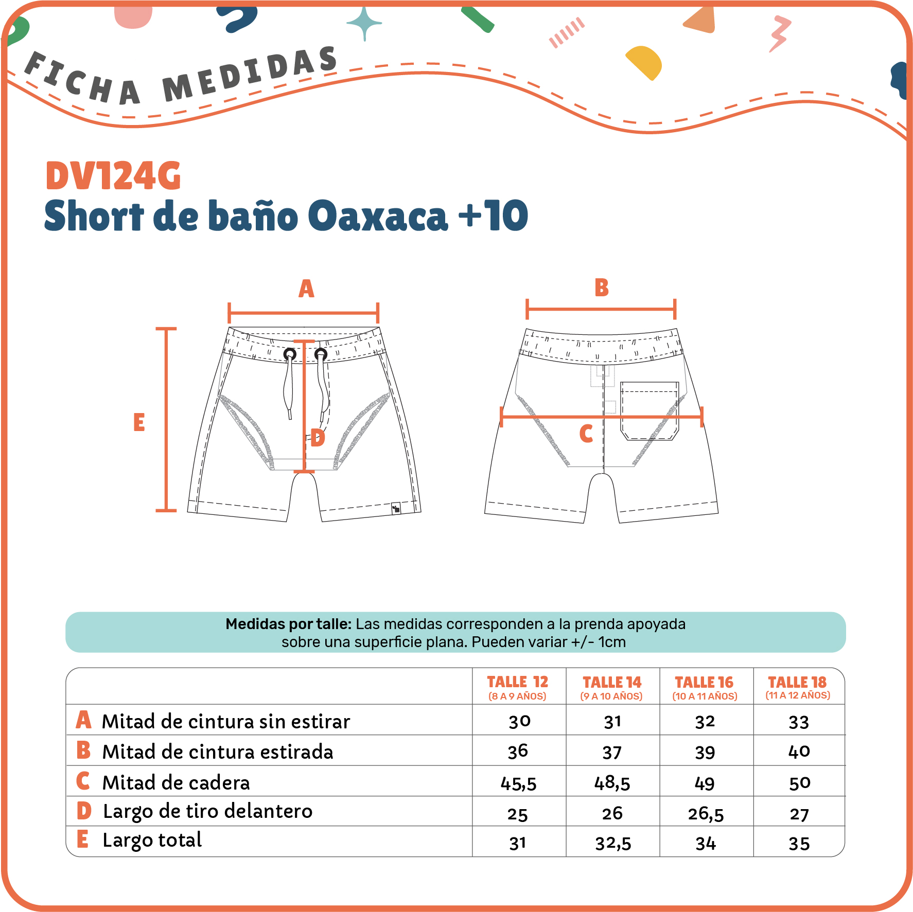 El short de baño "Oaxaca" es la elección perfecta para chicos y preadolescentes que buscan estilo y comodidad en la playa o la pileta.